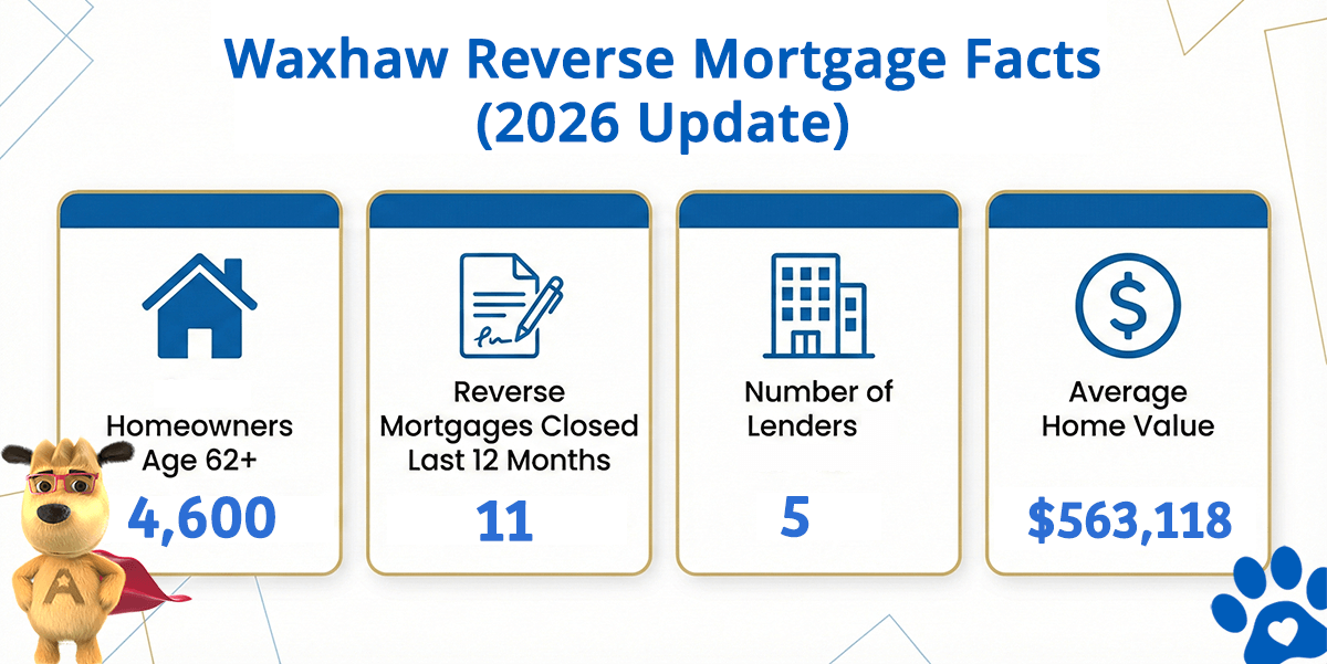 Based on this 2026 update, Waxhaw has an estimated 4,600 homeowners aged 62 and older, with 11 FHA-insured reverse mortgages closed during the most recent 12-month reporting period.